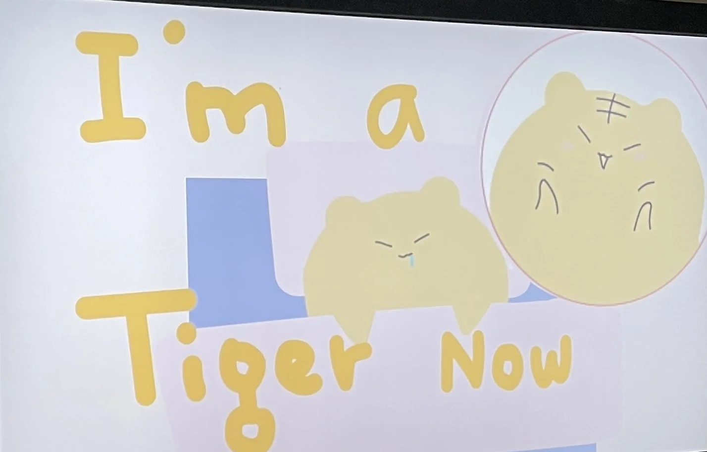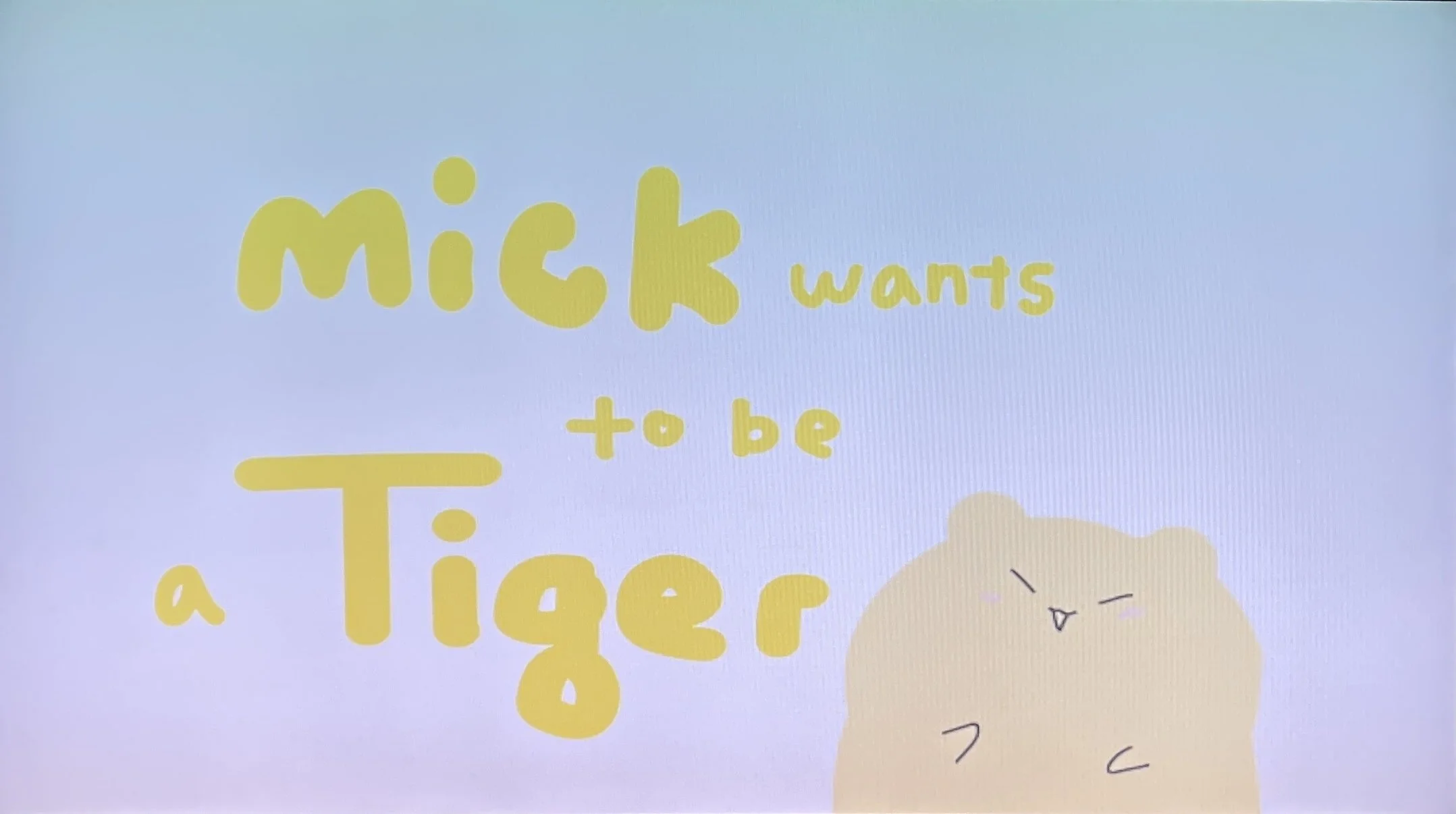 Mick is a hamster. He likes tigers very much. In order to be more like the tiger he likes, he wants to draw tiger stripes on his head (he didn't plan to draw the back because his hands are too short). Mick tried. He used different pens or paints to paint on his head, but all these methods were unsuccessful. He finally gave up and slept sadly. In a dream Mick dreamed that he had tiger stripes on his head and successfully turned into a tiger. Congratulations.