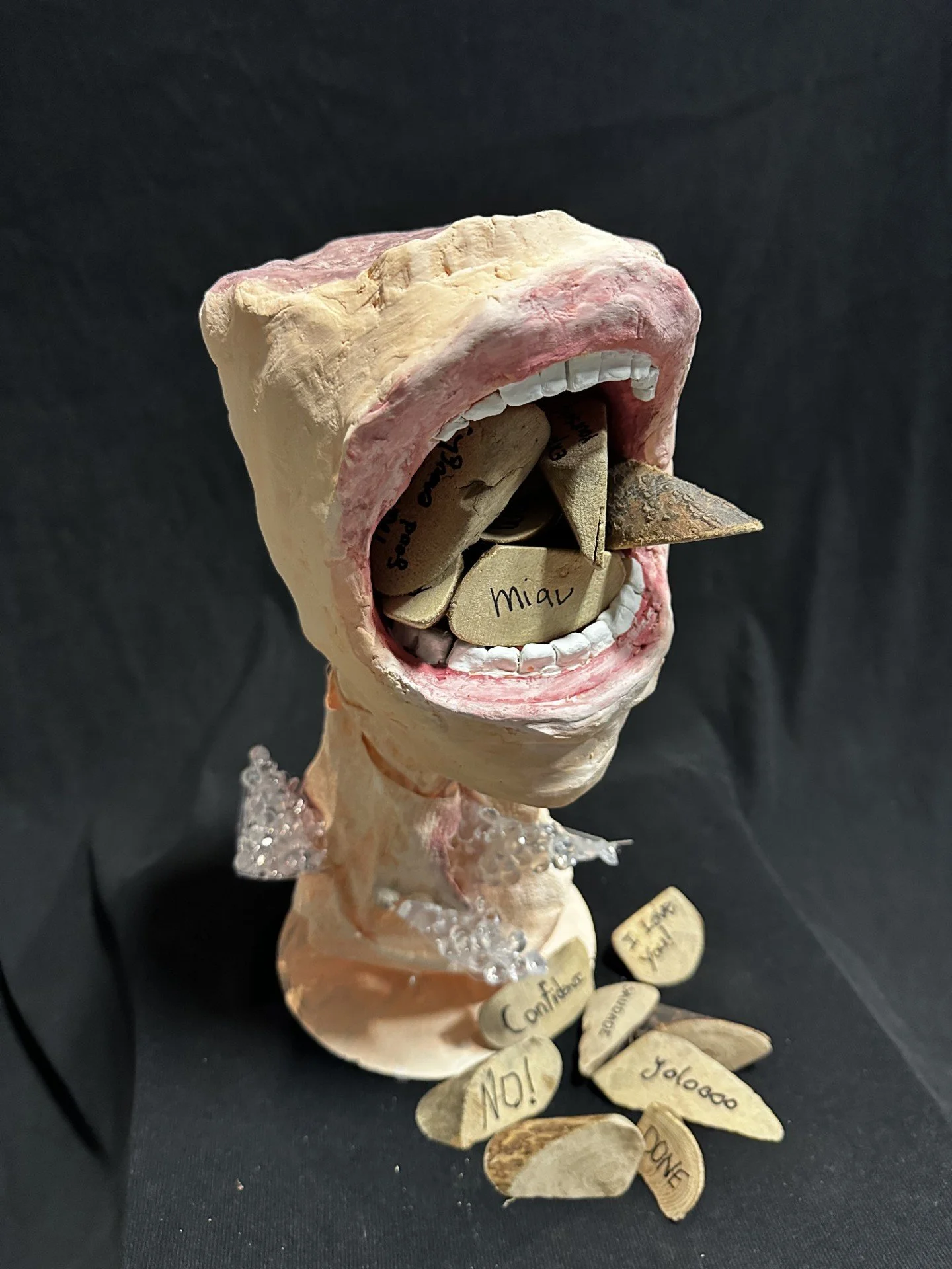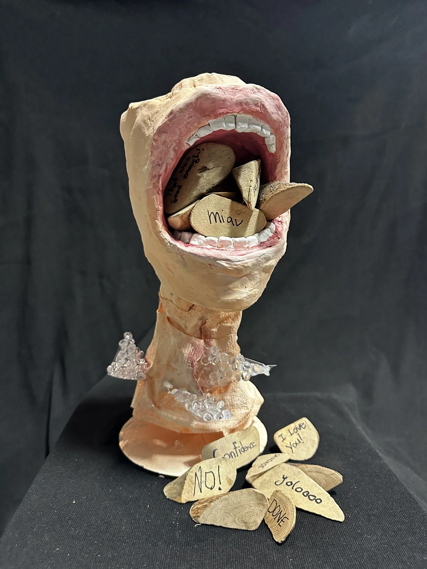 The sculpture becomes a space for collective catharsis, allowing participants to externalize their internal weight. I am fascinated by the paradox of silence: while it protects us from vulnerability, it simultaneously corrodes us from within. Through this piece, I aim to express the hidden dangers of our unspoken words and create a moment where we can confront what we've been carrying alone.