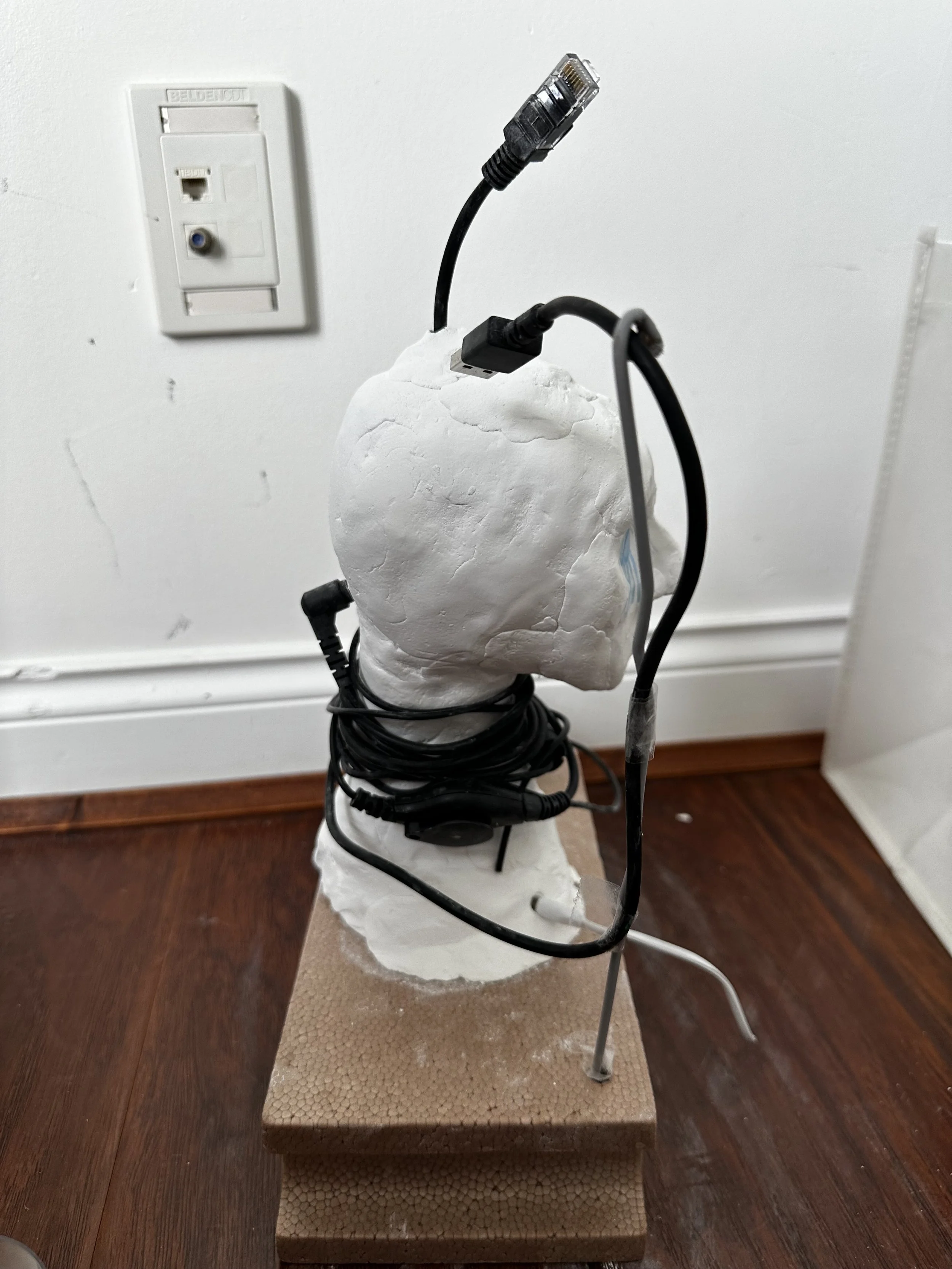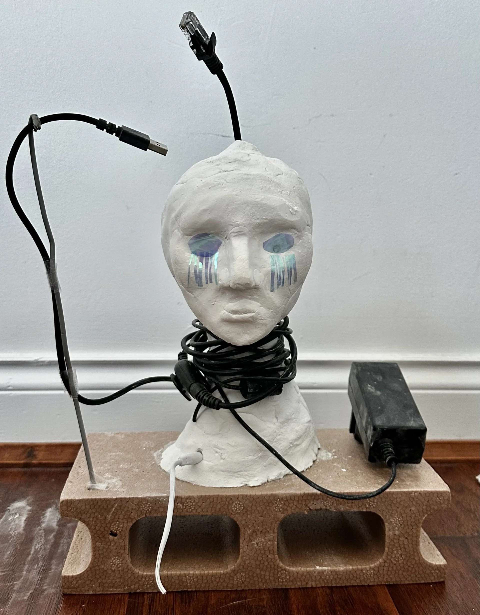In a world caught between life and death, shaped by the collision of technology and culture, I feel my existence has flattened reduced to screens, speakers, and smart products that fragment my reality. A dream sparked my need to create—a dream of a life overtaken by digital systems, controlled until the very end. My work reflects this entanglement: a quiet rebellion against a life increasingly mediated, where death and disconnection are no longer opposites, but neighbors.