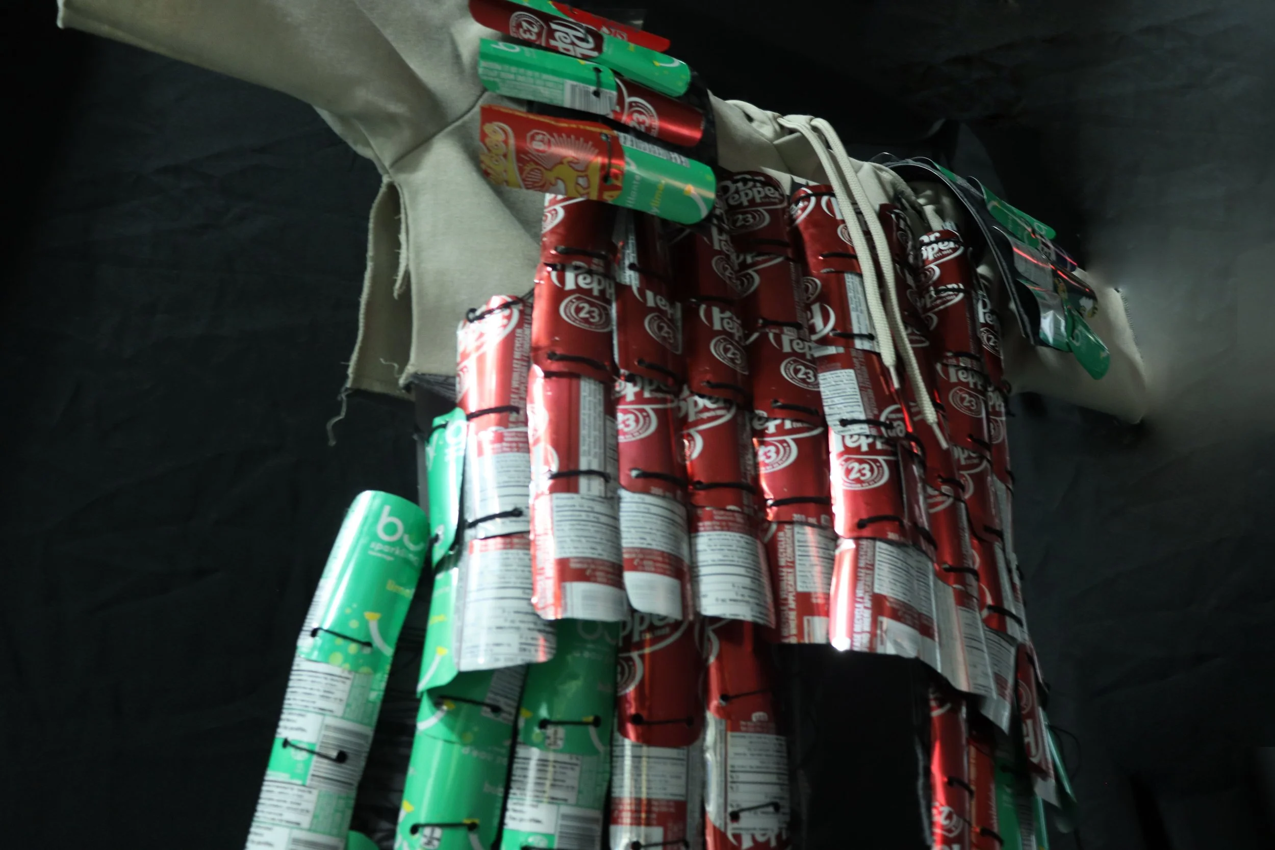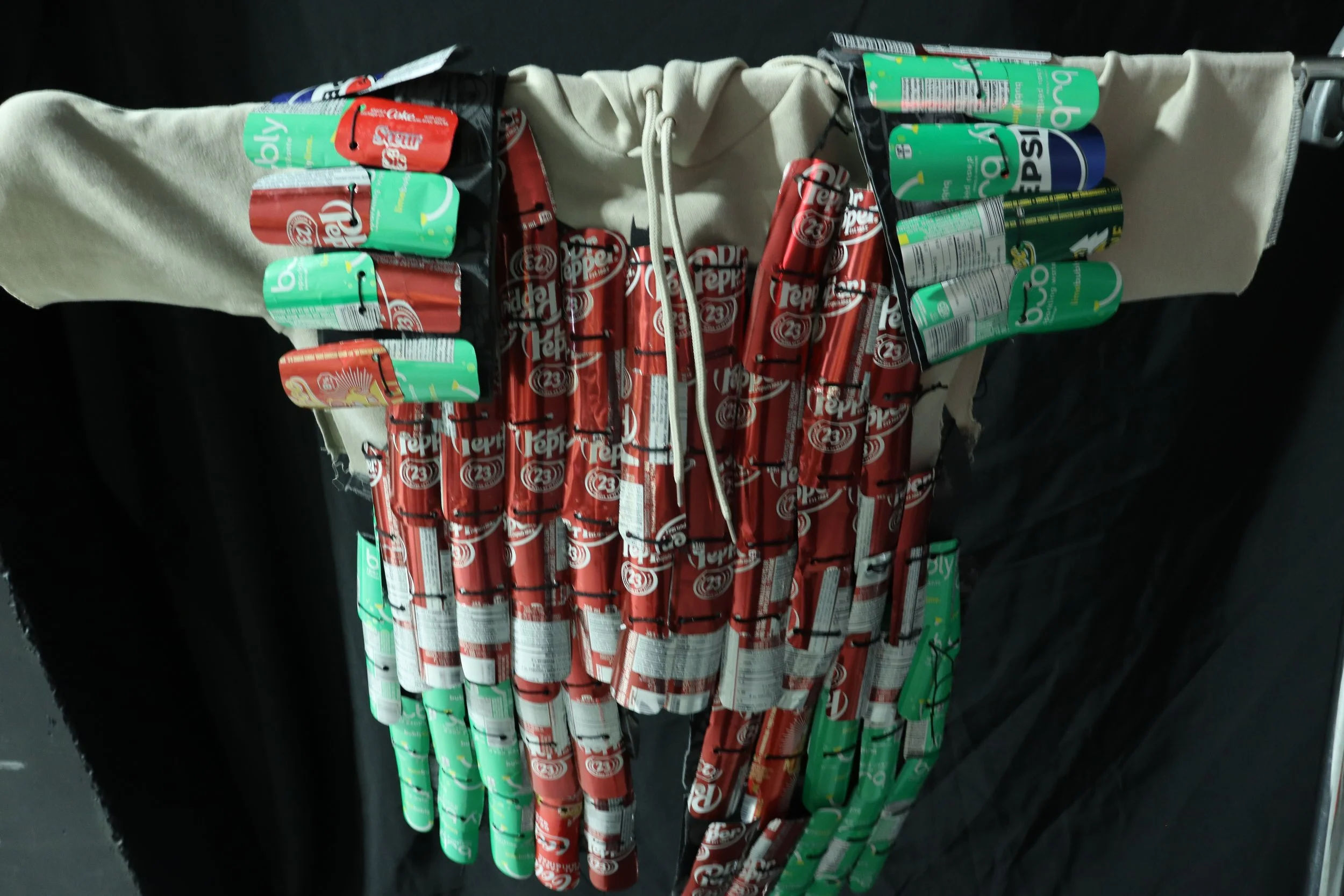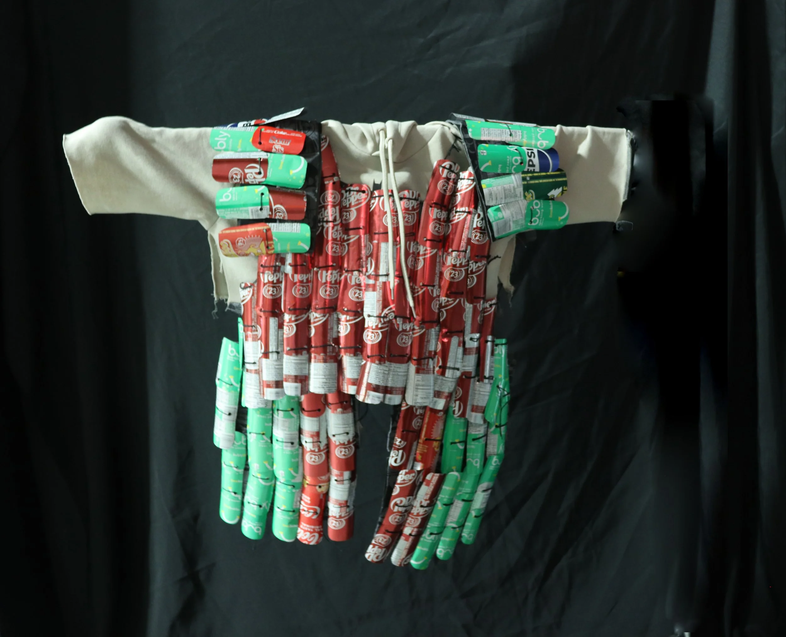 Materials: Aluminum cans, String, Hoodie, Poster Paper
