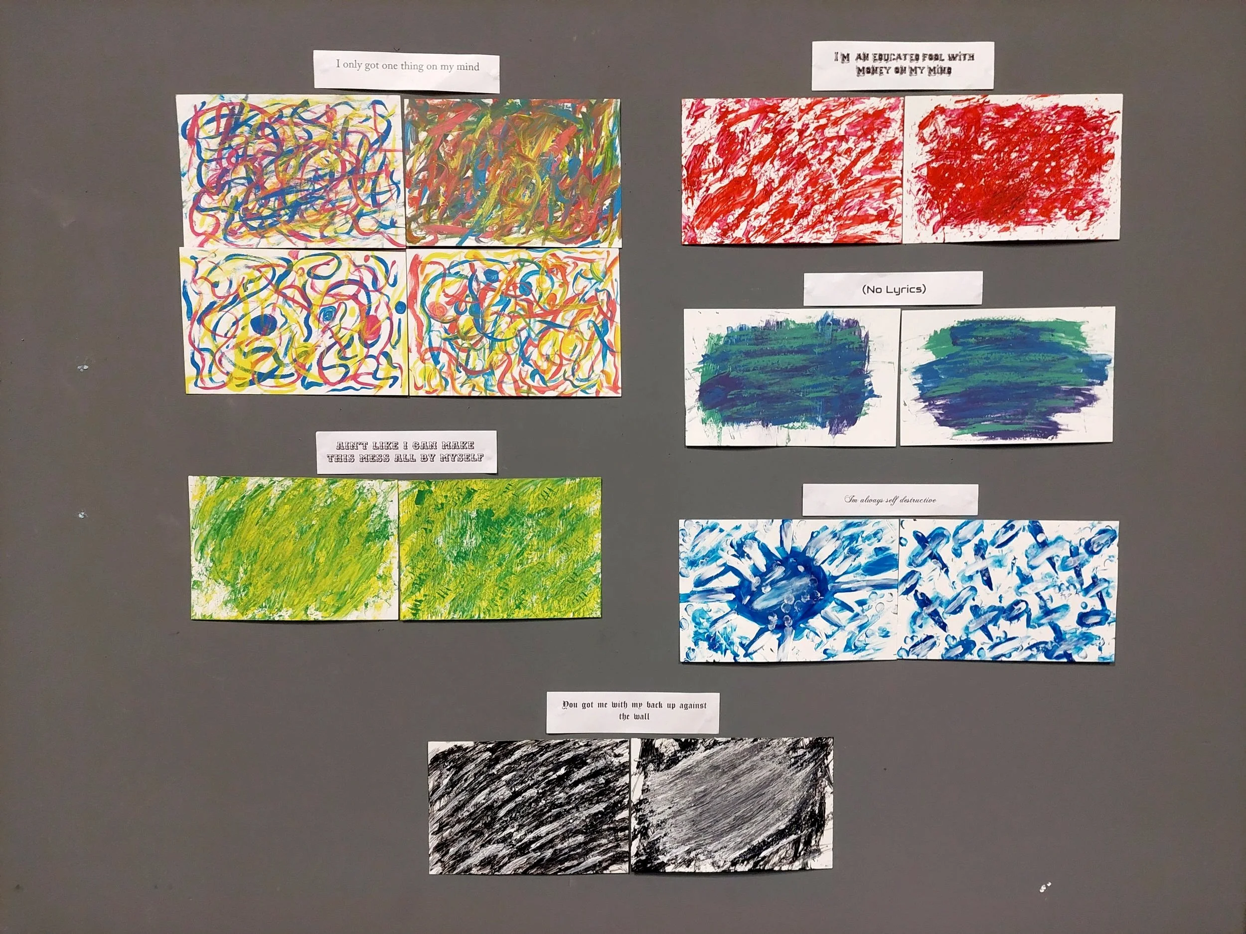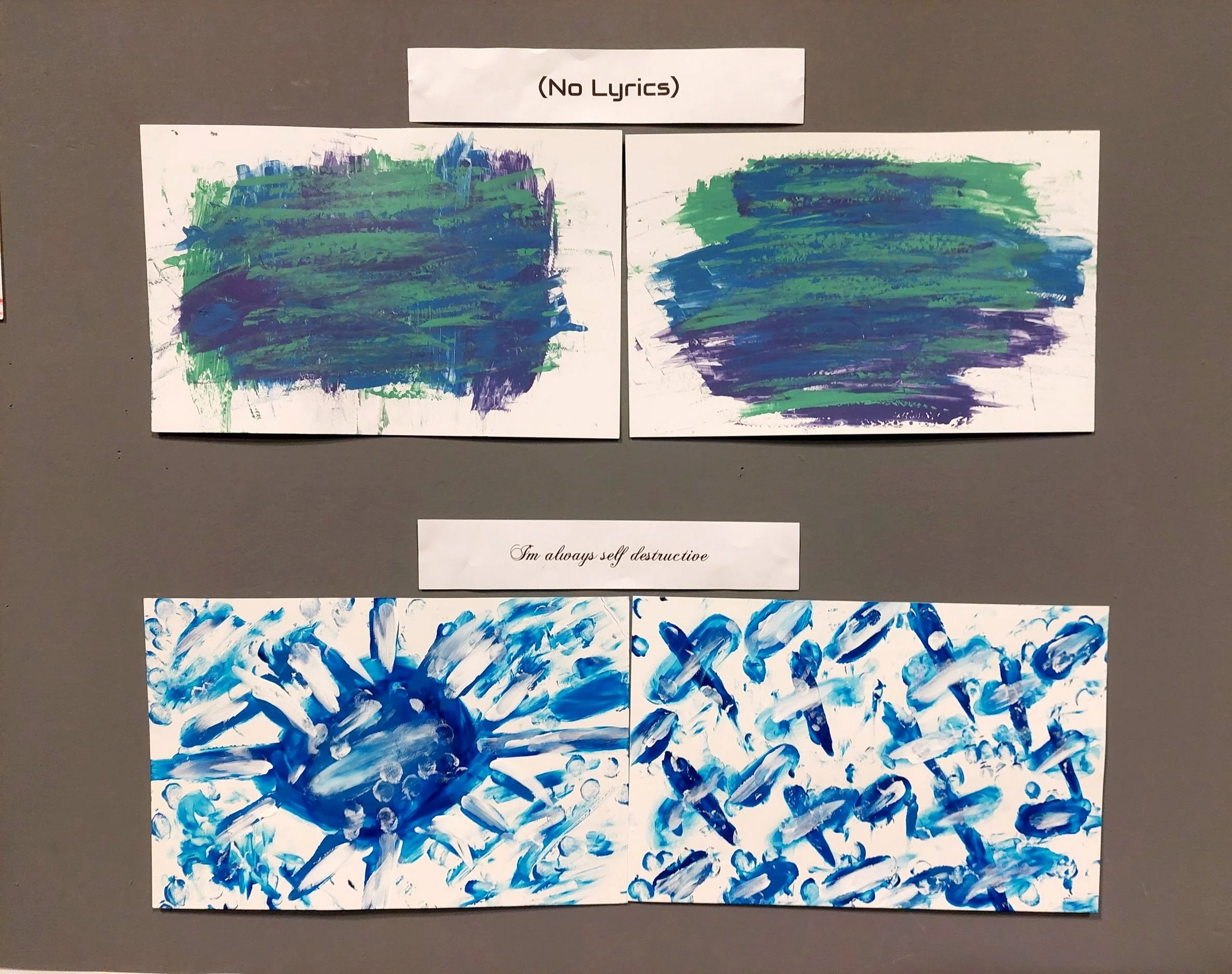My research led me to artists who used music as inspiration, especially Kandinsky, who famously translated music into abstract paintings to capture its emotional power. Inspired by his approach, I aimed to do the same—inviting viewers to sense which genre influenced each piece and to experience the emotions I felt while creating them.