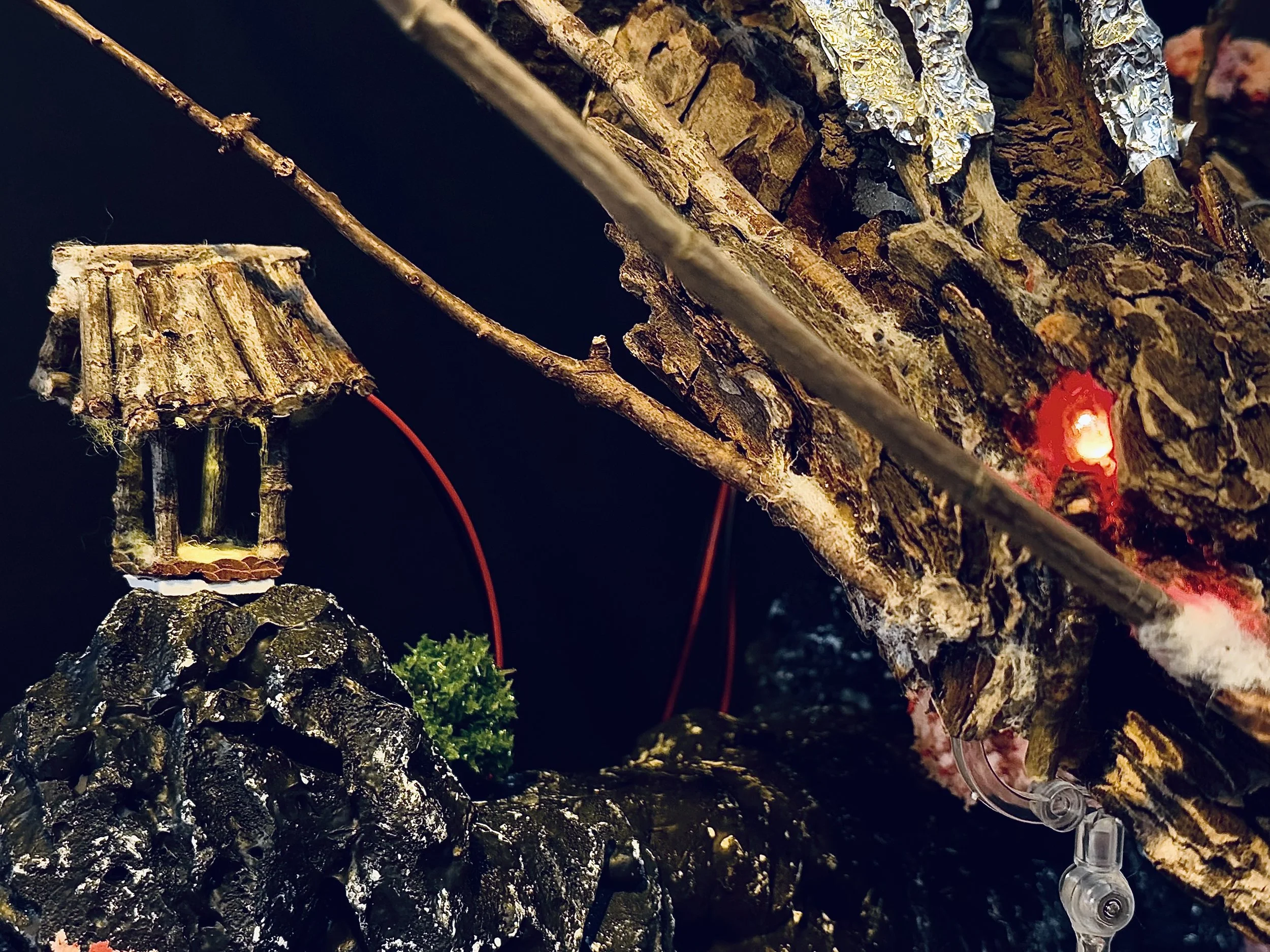 Materials: Wood, Stone, Material, Expanding foam, Aluminum foil