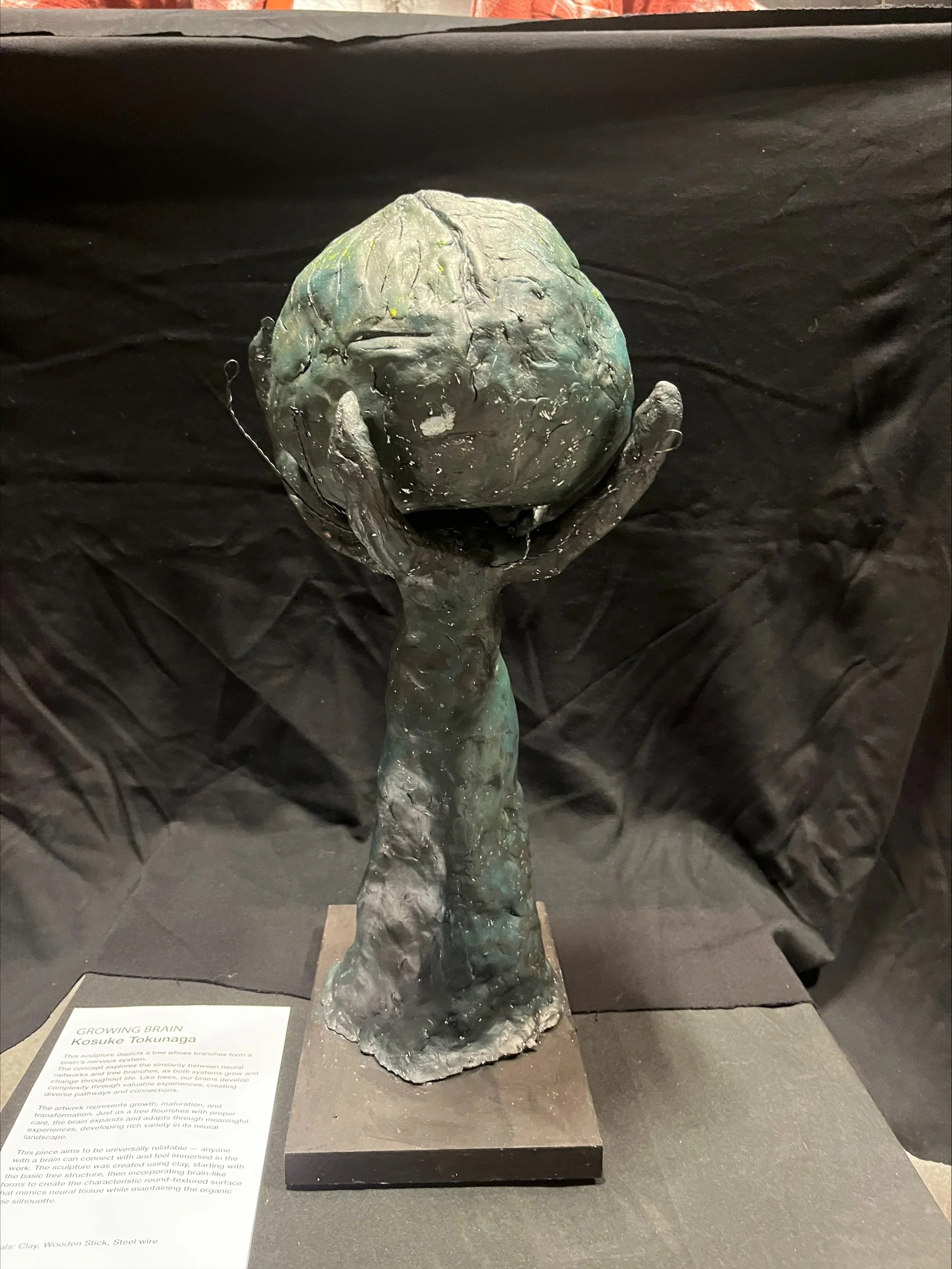 This piece aims to be universally relatable — anyone with a brain can connect with and feel immersed in the work. The sculpture will be created using clay, beginning with the basic tree structure, then incorporating brain-like forms to create the characteristic rounded, textured surface that mimics neural tissue while maintaining the organic tree silhouette.