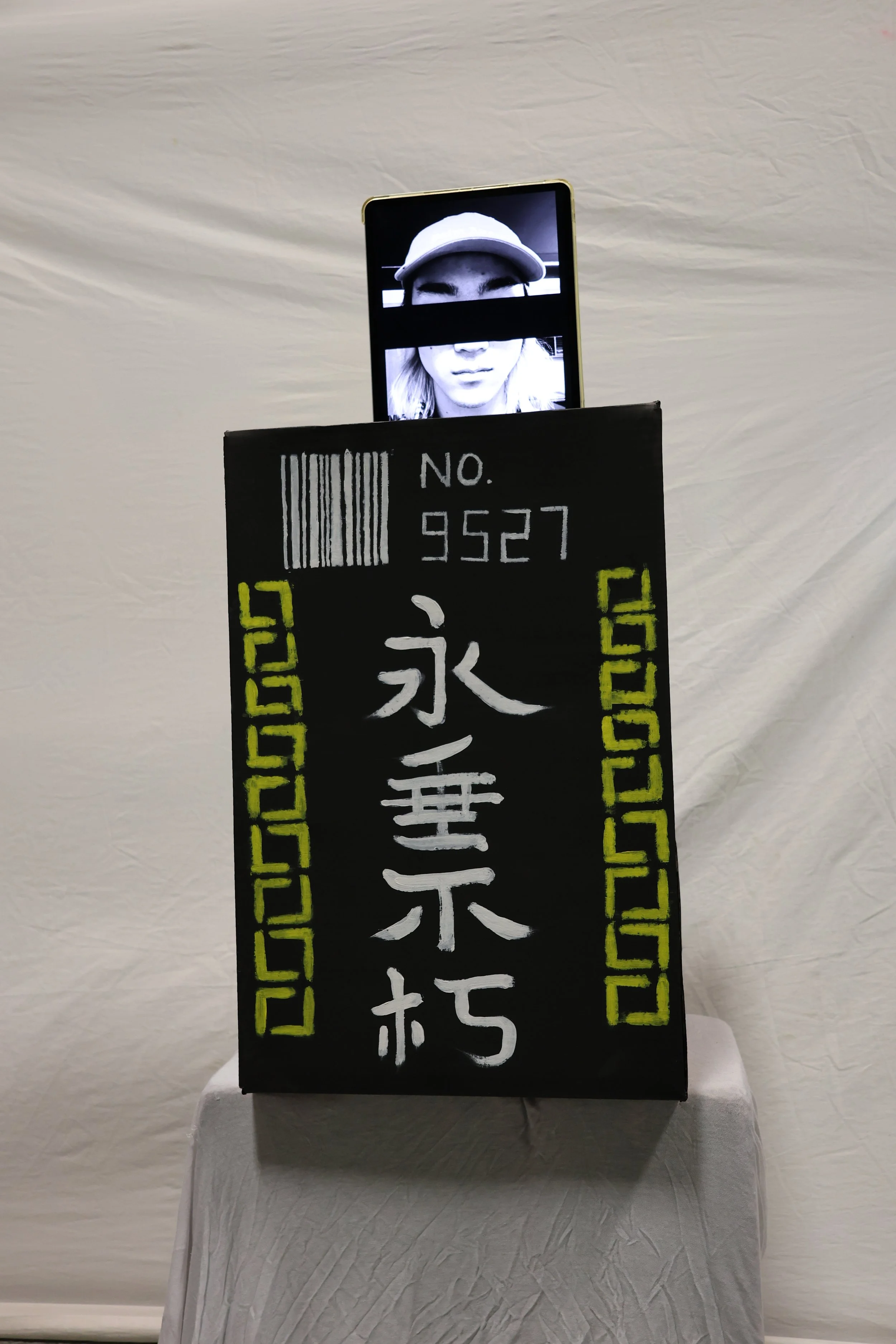 My piece is a cardboard based sculpture of grave mix with digital pad photo on it. My artistic practice moves within the tension between two-dimensional and three-dimensional life. Through the use of digital devices, I approach creation as a form of inquiry.