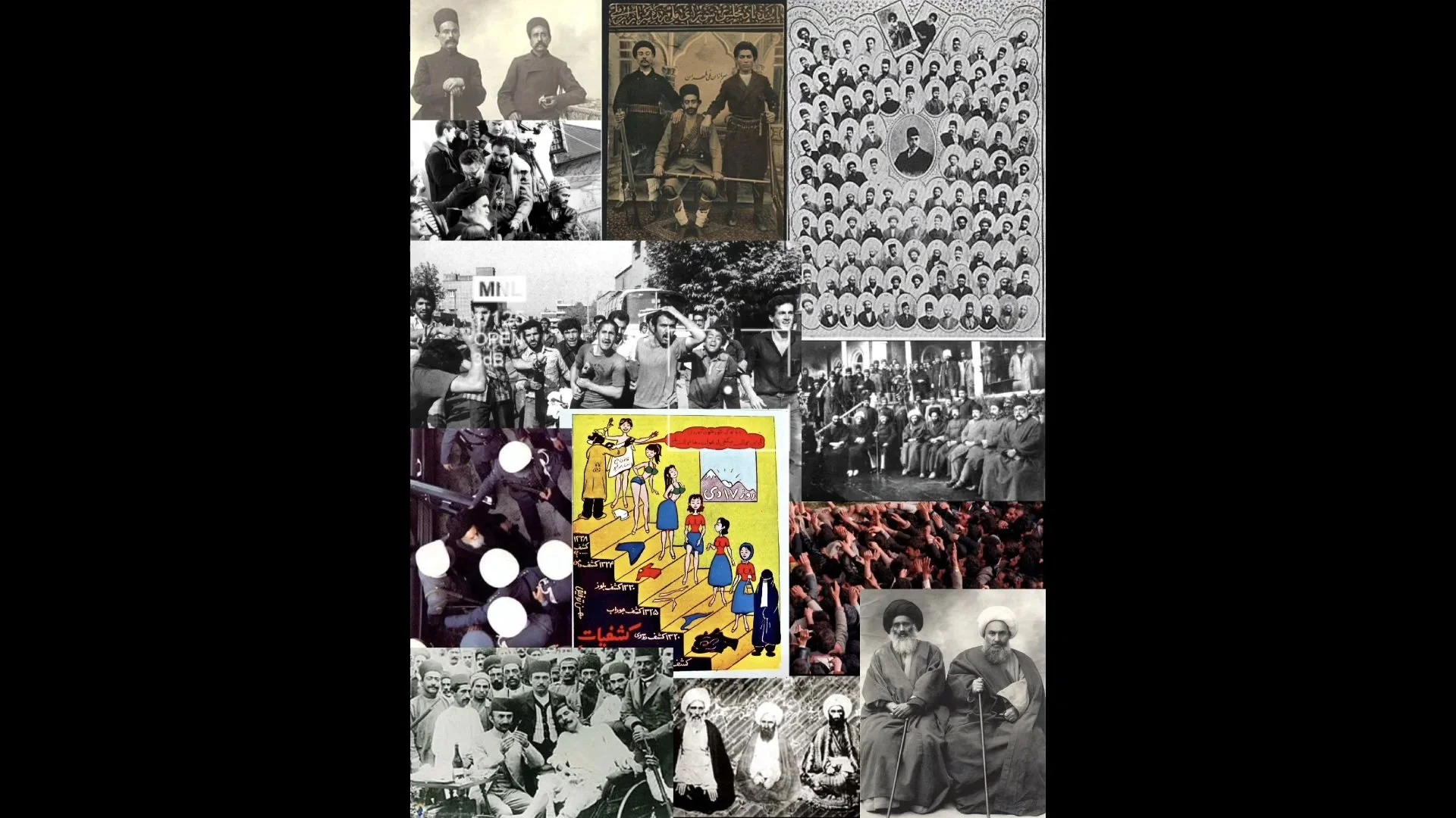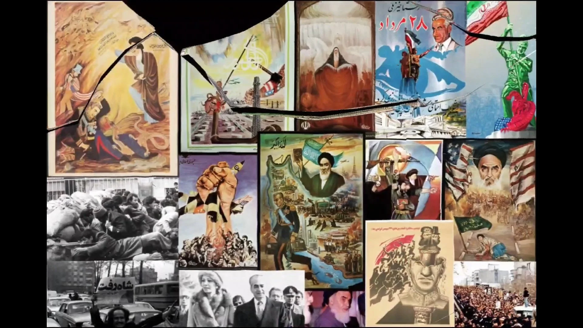 By creating a short 2 minute video montage made from collaged images of revolutionary propaganda posters, paintings, photographs & edited clips.