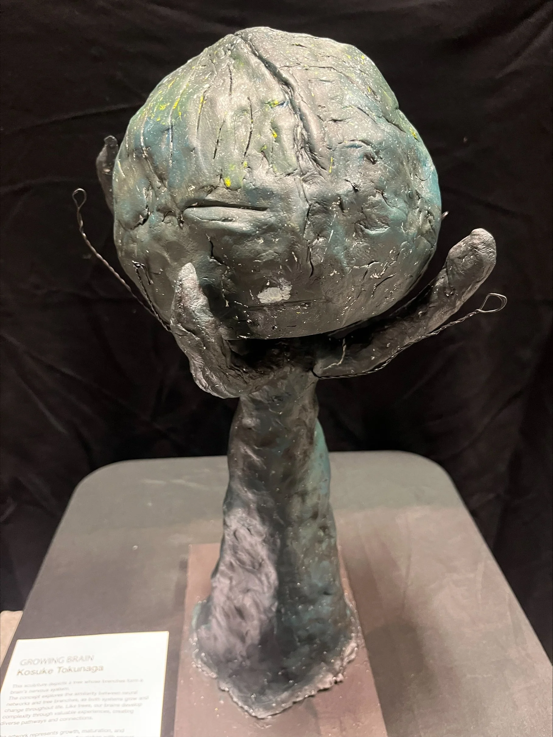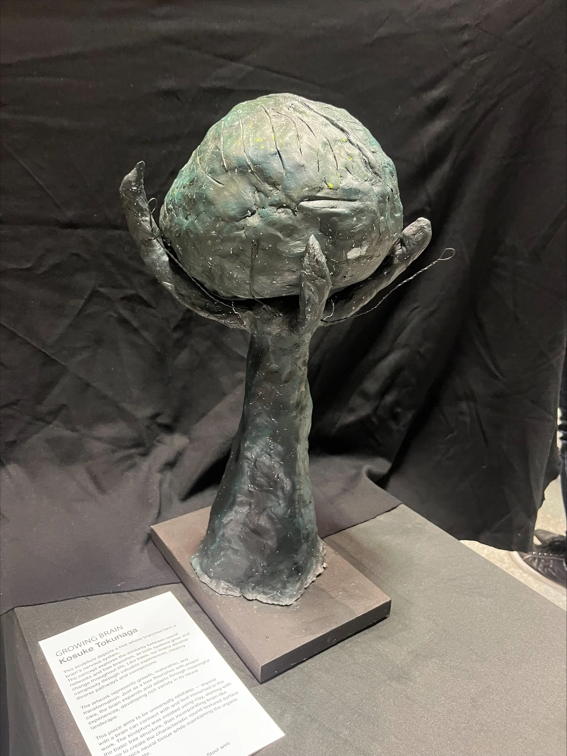 This sculpture depicts a tree whose branches form a brain's nervous system. The concept explores the similarity between neural networks and tree branches, as both systems grow and change throughout life. Like trees, our brains develop complexity through valuable experiences, creating diverse pathways and connections.