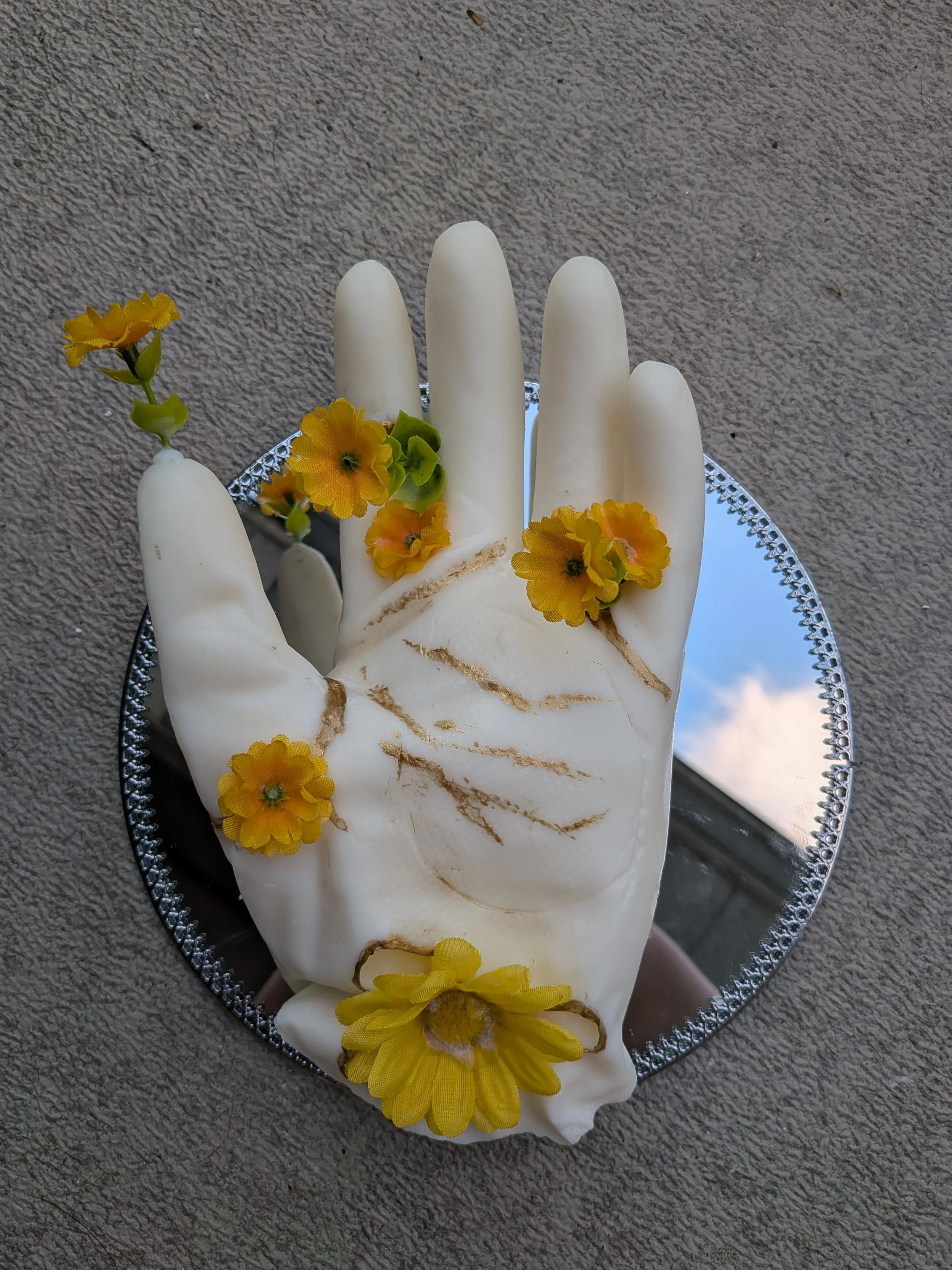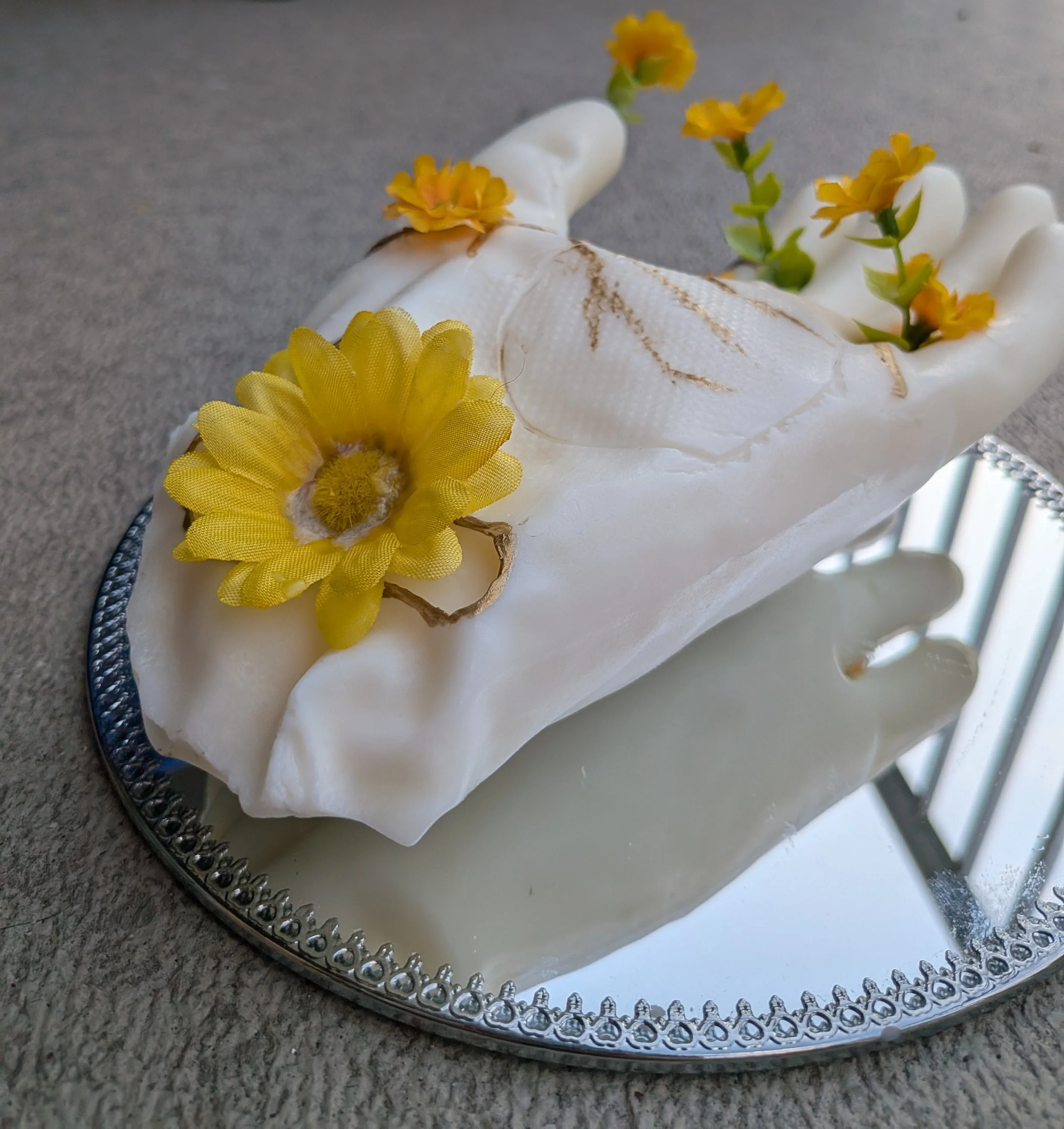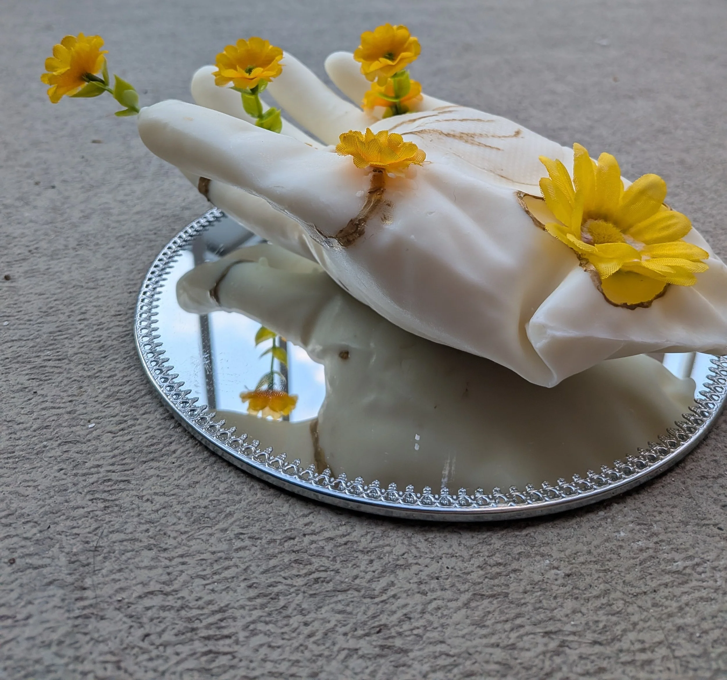 My project, Icarus, is a handmade model constructed from candle wax and gold paint. It explores themes of damage, self-worth, and the emotional cost of constantly giving without receiving. Throughout my life, I've often found myself giving more than I received, in friendships, in family, even in school. This constant effort to be needed and loved shaped much of how I relate to others. Creating this piece allowed me to reflect on those experiences. The fragility of the wax and the flame became a metaphor for how quickly trust, or a sense of connection, can disappear.