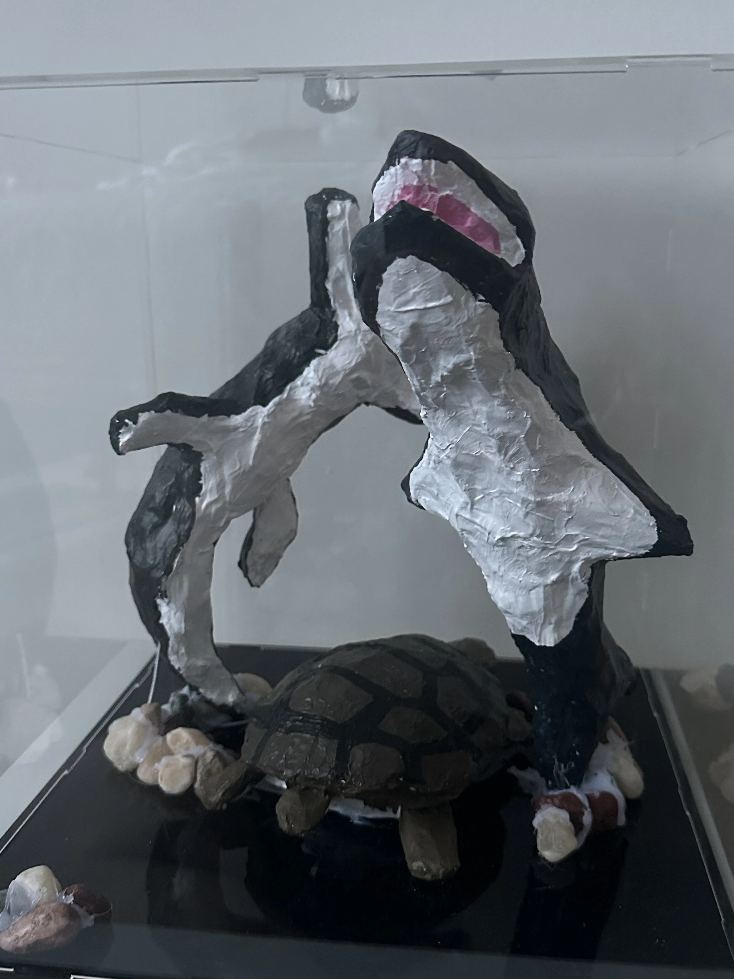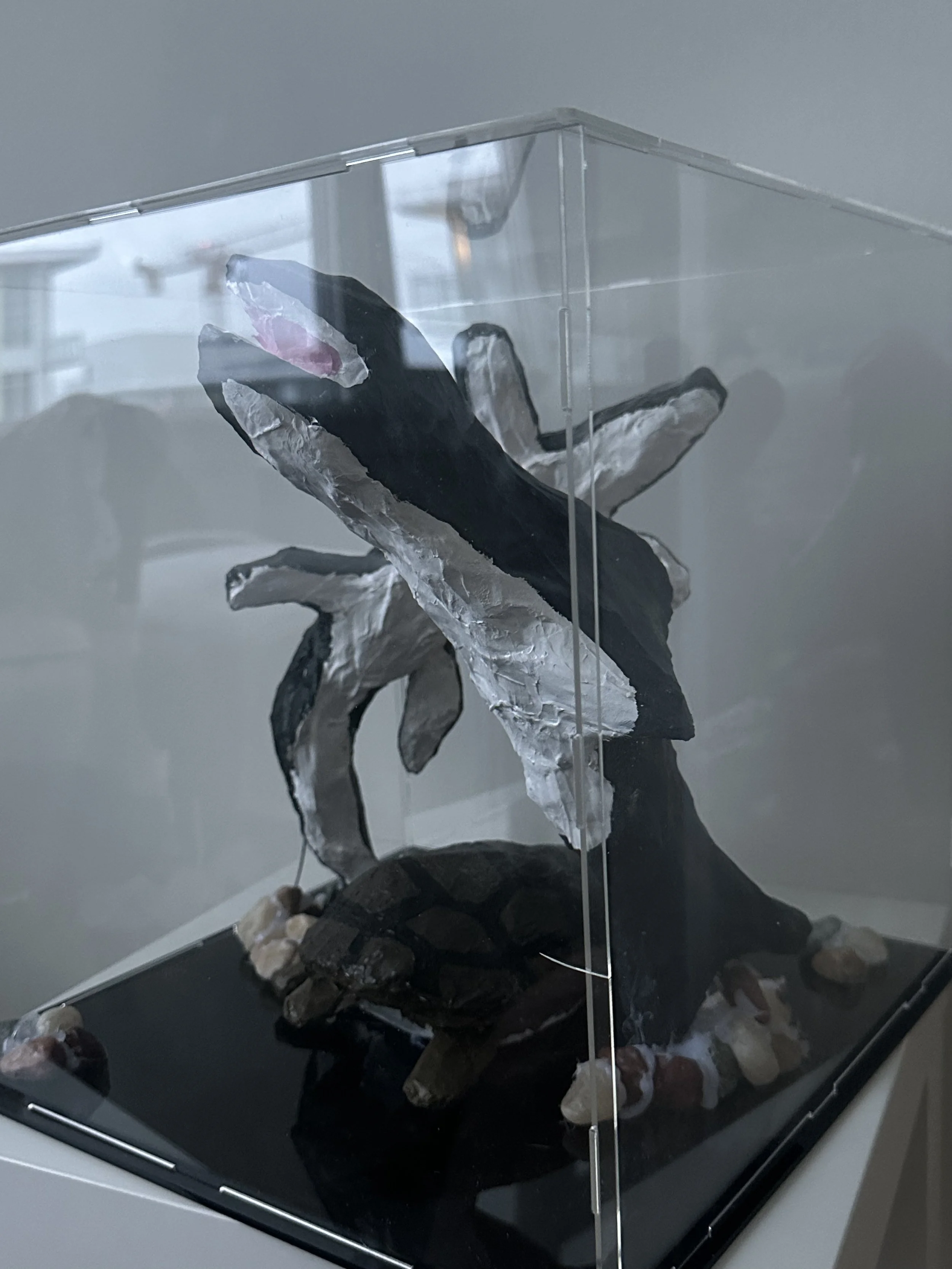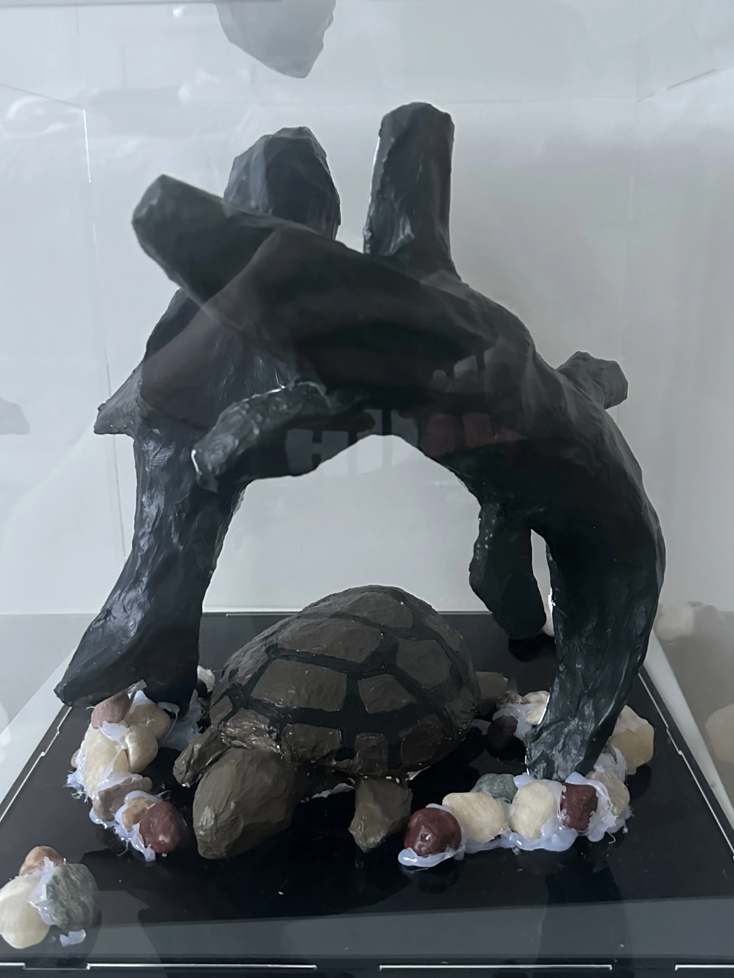 I choose sculpture as my artform as this was new to me and I wanted to challenge myself. I have faced a lot of challenges from forming the paper mache to stabilizing the sculptures. As an act of preserving the cultural background, I decided to put a glass shell on top of my piece.