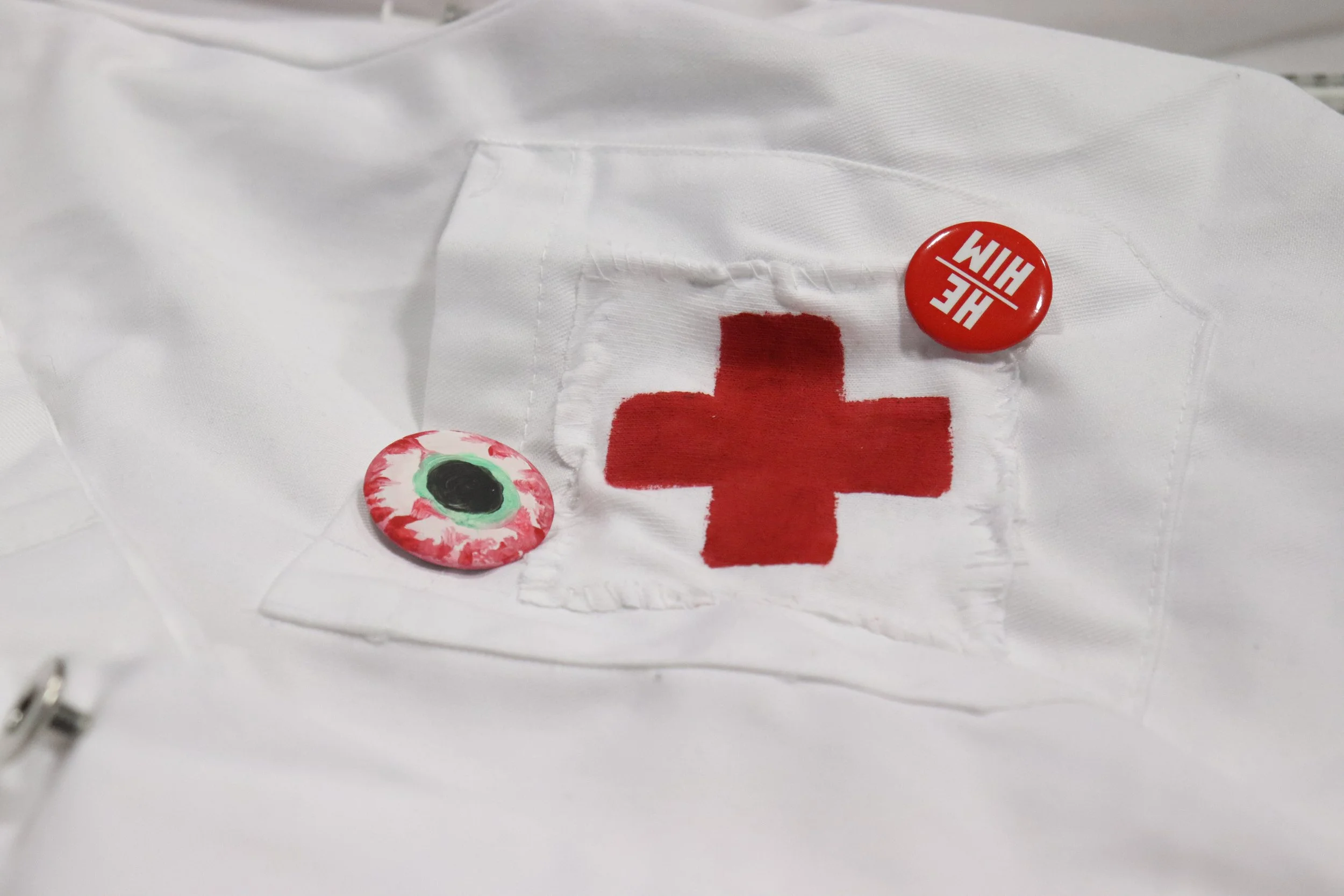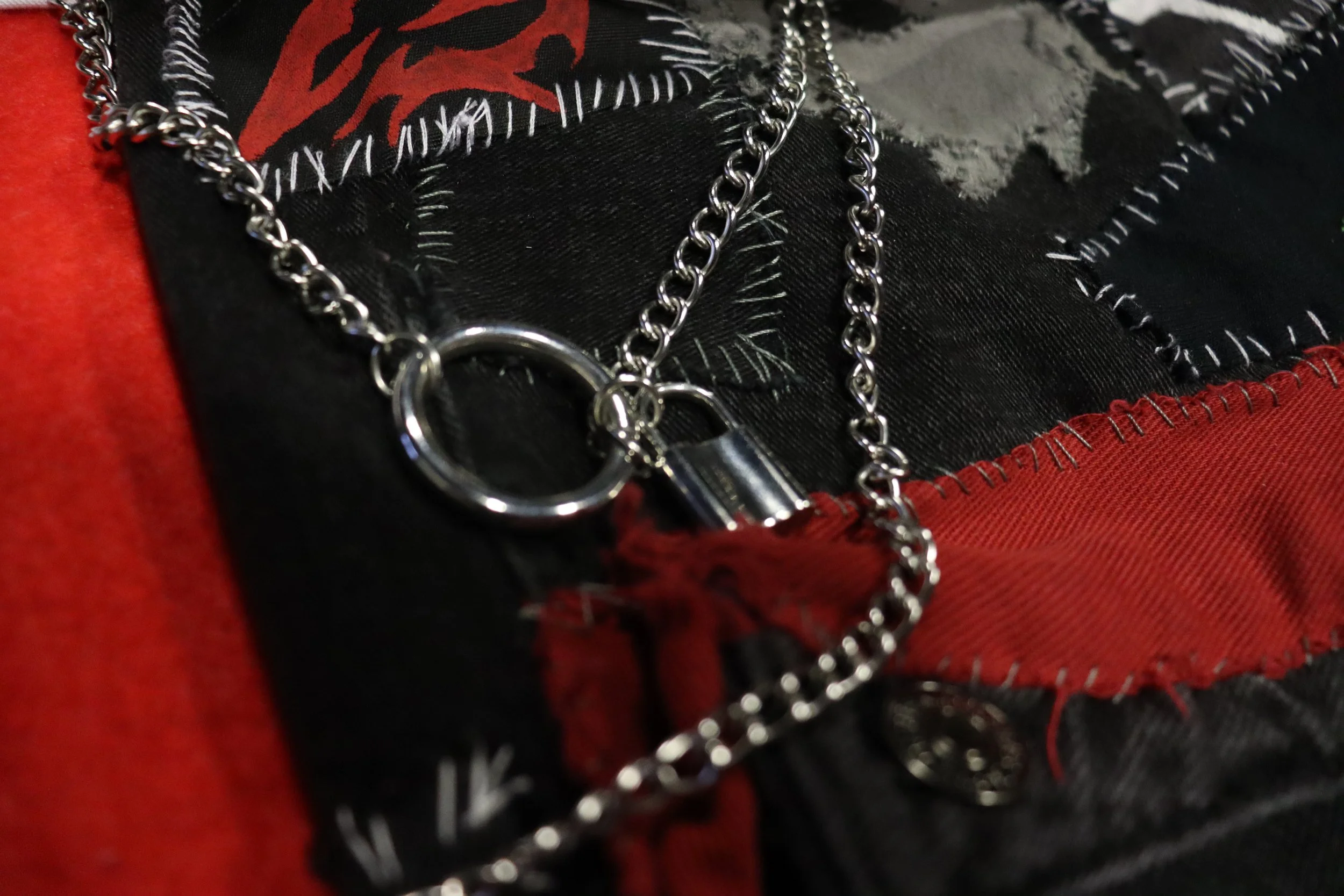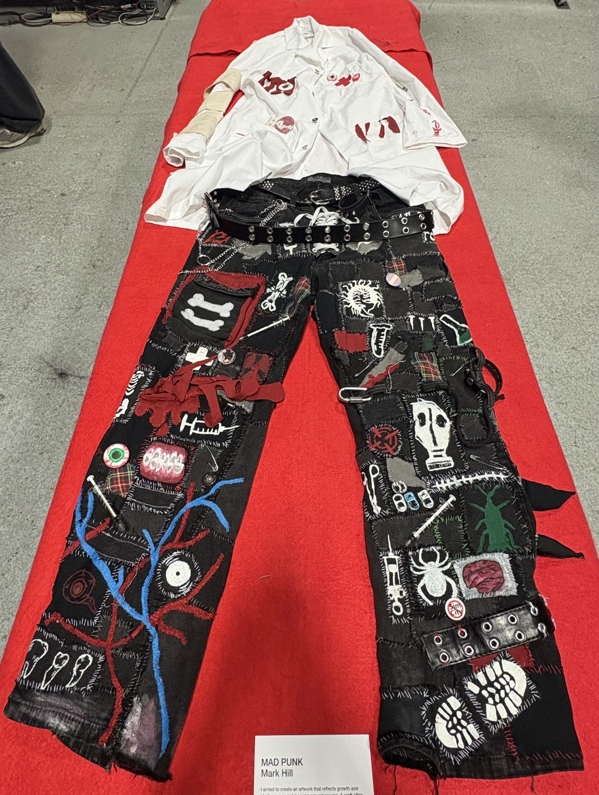For this project, I made a pair of black patch pants and a lab coat, choosing materials that speak to me. I incorporated scraps from old clothes and used acrylic paint to add symbols and marks. I sewed on pockets and bands to increase storage, making the garments functional as well as personal. The extra fabric also provides warmth, emphasizing practicality. Through this process, I challenge stereotypes and highlight the emotional significance of sewing and clothing, transforming a simple craft into a statement of identity and resilience.